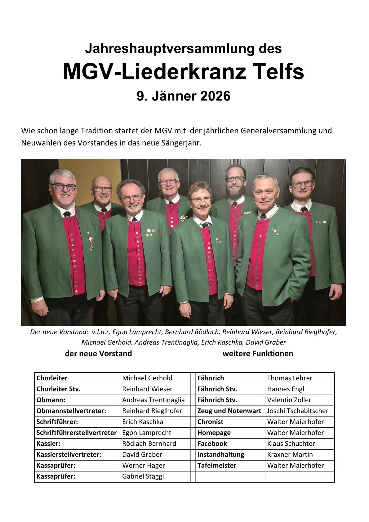 Wie schon lange Tradition startet der MGV mit der jährlichen Generalversammlung und Neuwahlen des Vorstandes in das neue Sängerjahr