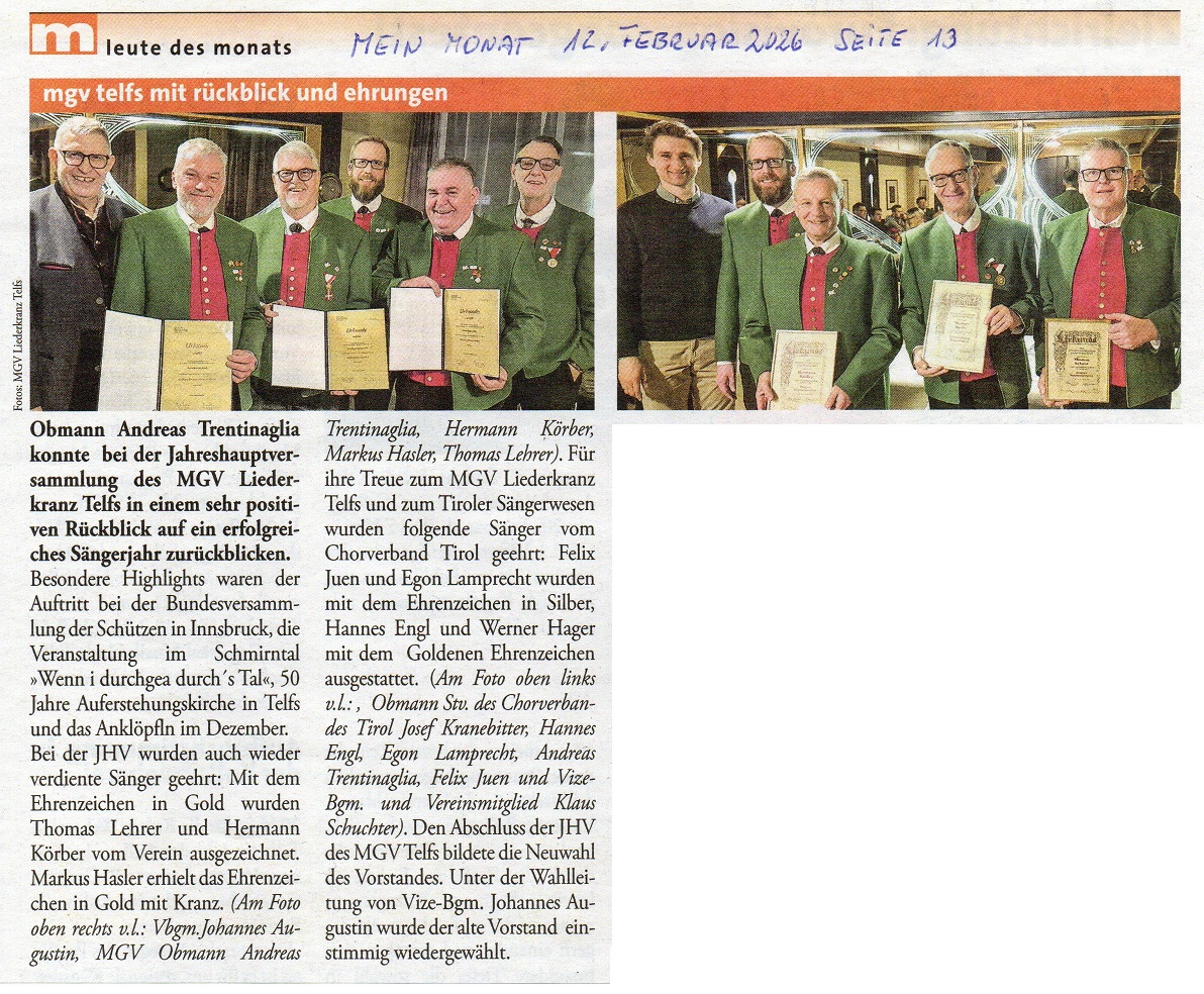 Mein Monat MGV Telfs mit Rückblick und Ehrungen 12.02.2026 Seite 13